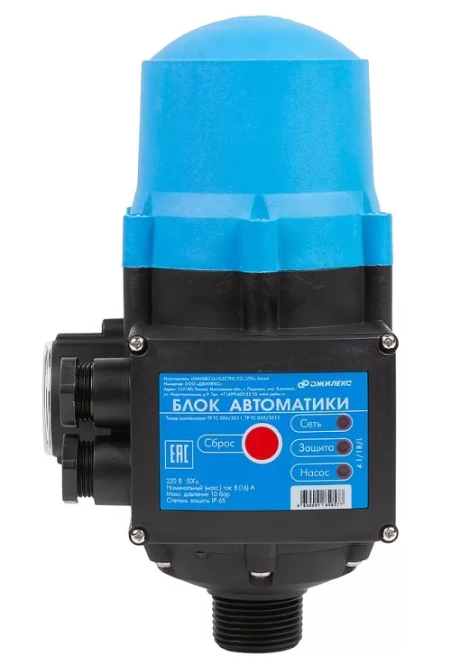 Позволяет автоматизировать работу электронасоса, осуществляя запуск при понижении давления (открытии кранов), или остановку при отсутствии расхода воды в системе (закрытие кранов). Обеспечивает защиту насоса от работы без воды («сухого хода»).