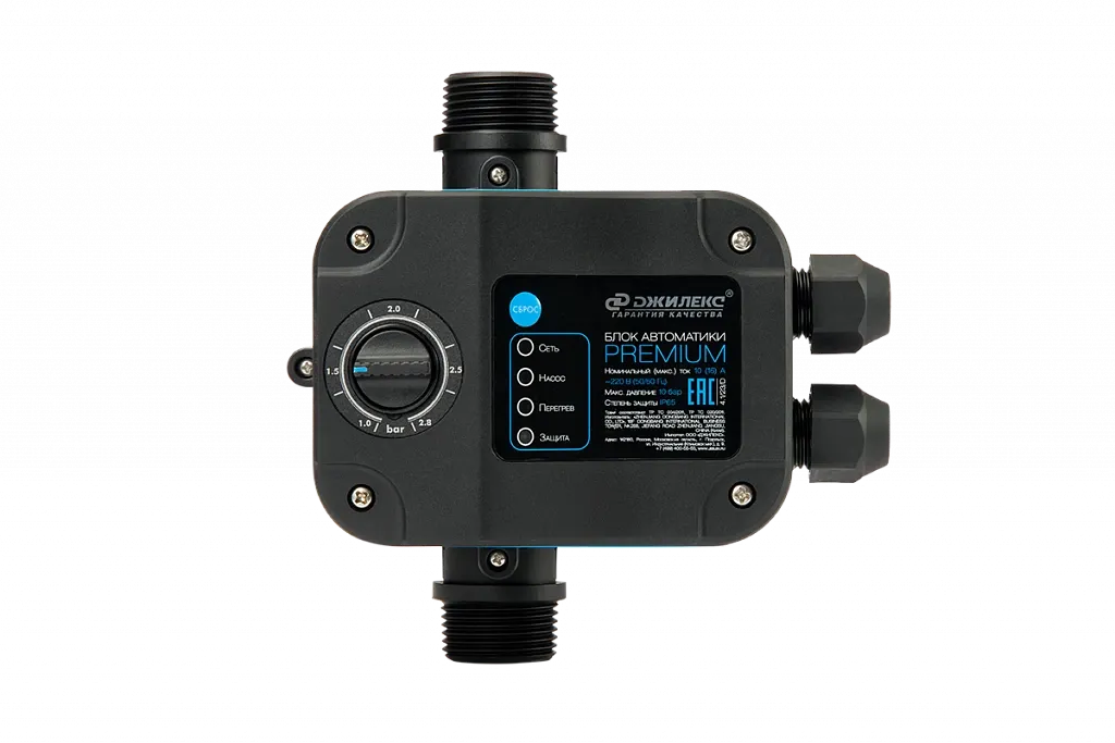 Кроме того, блок автоматики PREMIUM оснащен встроенным обратным клапаном, который предотвращает обратный поток воды, обеспечивая безопасность и эффективность работы системы.