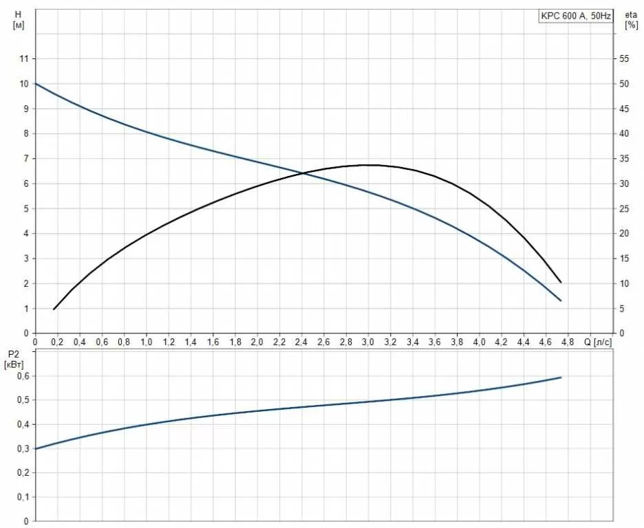 Графические характеристики дренажного насоса Grundfos KPC 600 A