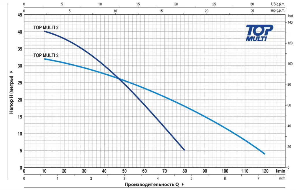 Графические характеристики дренажного насоса PEDROLLO TOP MULTI II