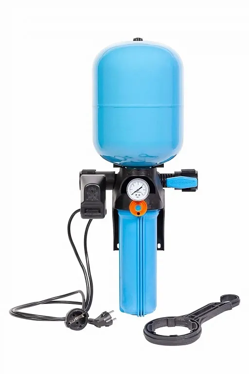 Предназначен для поддержания заданного давления в системах водоснабжения с предварительной фильтрацией воды. Легкий и удобный монтаж. Не требует дополнительной настройки. Автоматическое управление включением/выключением электронасоса. Полный комплект для автоматизации системы водоснабжения. Предварительная фильтрация воды. Календарь смены картриджей фильтра. Вся система устойчива к коррозии. Позволяют подключаться в любом удобном месте магистрали вне зависимости от направления потока воды. Объем бака 10 литров.