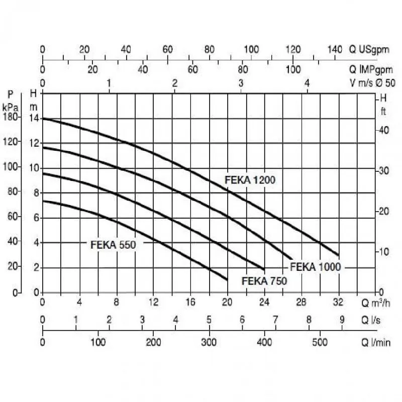Графические характеристики фекального насоса DAB FEKA VS 1200 M-A
