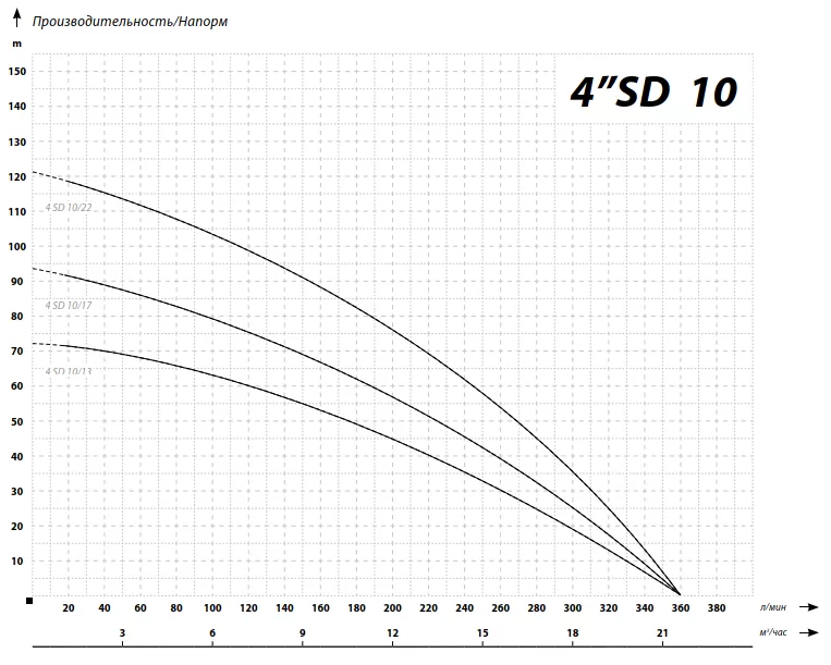 Трехфазный глубинный погружной насос IBO 4SD 10/13 (380В) диаметром 98 мм с повышенной устойчивостью к песку. Насос IBO 4SD 10/13 (380В) доступен к покупке с двигателями IBO и итальянскими двигателями IBO ITALY. В насосе IBO 4SD 10/13 (380В) используется технология «плавающих лопастных колес», а также для основных рабочих элементов насоса применяются износостойкие материалы: латунный нагнетательный патрубок, корпус, вал и сетка фильтра выполнены из нержавеющей стали AISI 304 / а также лопастные колеса выполнены из высококачественной пластмассы, Благодаря этому насос IBO 4SD 10/13 (380В) имеет повышенную стойкость к песку. Насос комплектуется кабелем 1 м, по желанию его можно нарастить до нужного размера. Скважинный насос IBO 4SD 10/13 (380В) имеет отличные характеристики. Напор насоса в максимальной точке составляет 72 м, а производительность достигает максимального показателя в 19.38 м³/час. Мощность двигателя составляет 3000 Вт, то вполне неплохо для насоса с такими напорно-расходными характеристиками. Насосы серии SD марки ИБО были первыми насосами на рынке, названными «анти–песочными». Они по прежнему являются одними из немногих скважинных насосов на рынке, которые имеют конструкции с такой высокой устойчивостью к песку. Максимальное содержание песка в воде – до 5%. Насос IBO 4SD 10/13 (380В) можно применять как аналог насосов ЭЦВ.