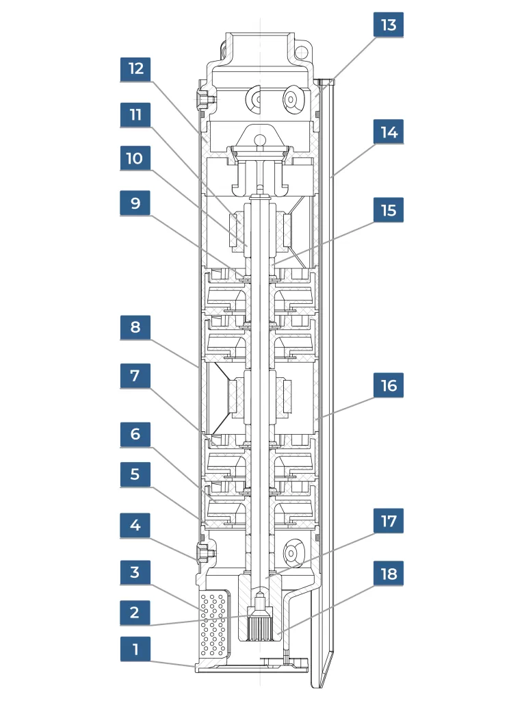 Скважинный насос IRCEM DL2BM07S представляет собой надежное решение для систем водоснабжения. Мощность в 750 Вт позволяет насосу эффективно перекачивать чистую воду с максимальным напором до 76 метров и производительностью до 3,8 м³/час. Погружной центробежный насос отличается прочным корпусом из нержавеющей стали, что обеспечивает защиту от коррозии и долгий срок службы. Диаметр насоса составляет 3 дюйма, а соединительный разъем выполнен с внутренней резьбой диаметром 1¼". Работает от сети 220 В при силе тока 5,9 А и частоте 50 Гц. Насос предназначен для эксплуатации в непрерывном режиме (S1) и способен перекачивать жидкость температурой от 1 до 35 °C. Класс защиты IP68 гарантирует полную герметичность. Легкость установки и устойчивость к механическим повреждениям делают модель удобной в эксплуатации. Крыльчатка из норила способствует надежной и бесперебойной работе. Вес насоса составляет 12,8 кг, а компактные размеры (длина 80 мм, высота 1268 мм, ширина 80 мм) упрощают монтаж в скважинах.