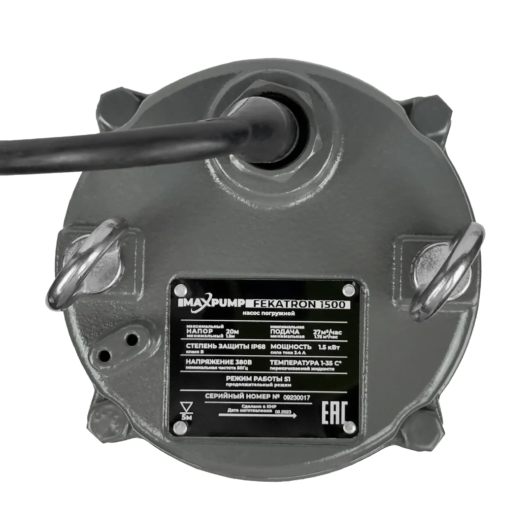 С выдачей максимальной мощности 1500 Вт, FEKATRON 1500 способен поднимать воду на высоту до 20 метров при максимальном расходе 27 м³/час. Номинальная производительность в 4.99 м³/час и номинальный напор 3.75 метра гарантируют эффективную обработку грязной воды. Этот насос оснащен металлической крыльчаткой и стальным измельчителем, что делает его идеальным для работы в условиях с содержанием частиц до 50 мм.