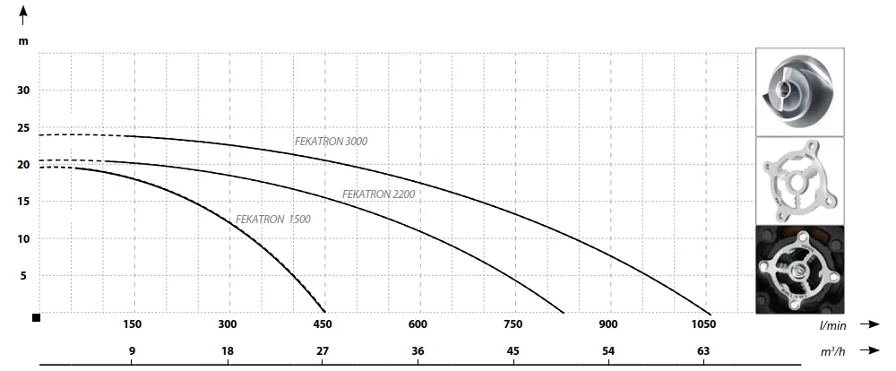 Погружной фекальный насос MAXPUMP FEKATRON 2200 широко используется в отводе сточных вод, канализационных системах и частных строениях. У насоса корпус и крыльчатка изготовлены из чугуна, что говорит о высокой прочности. Крыльчатка насоса MAXPUMP FEKATRON 2200 разработана для достижения большого напора и высокой производительности. В насосе установлен профессиональный измельчитель. Производительность насоса в максимальном значении 51 м³/час, а напор в максимальной точке 21 м. Насос работает на базе трехфазного двигателя мощностью 2200 Вт, 2900 об/мин, 380 В/50 Гц, IP 68.