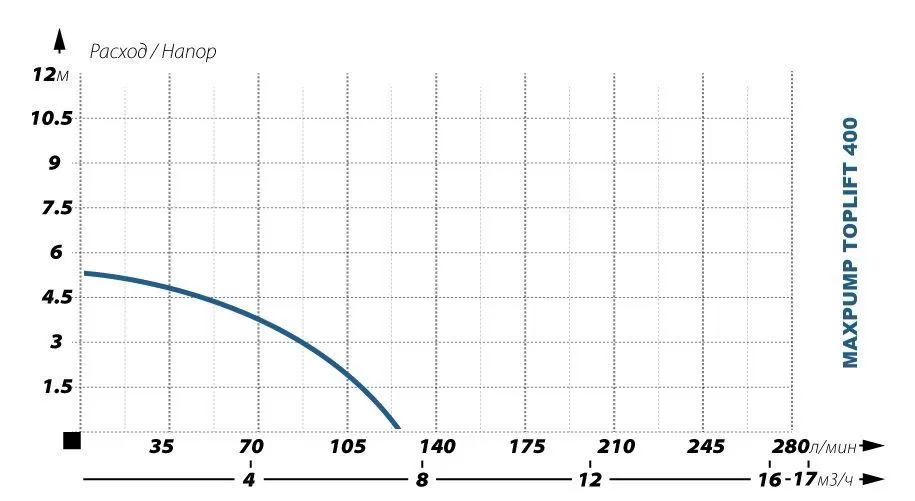 MAXPUMP TOPLIFT 400 D обладает отличной производительностью, благодаря мощному двигателю на 400 Вт. Это позволяет насосу справляться с задачами по перекачке сточных вод, включая жидкости, содержащие твердые частицы. Максимальный напор в 5 метров позволяет поднимать воду на значительную высоту, что делает его идеальным для удаления сточных вод из подвалов и других низко расположенных мест.