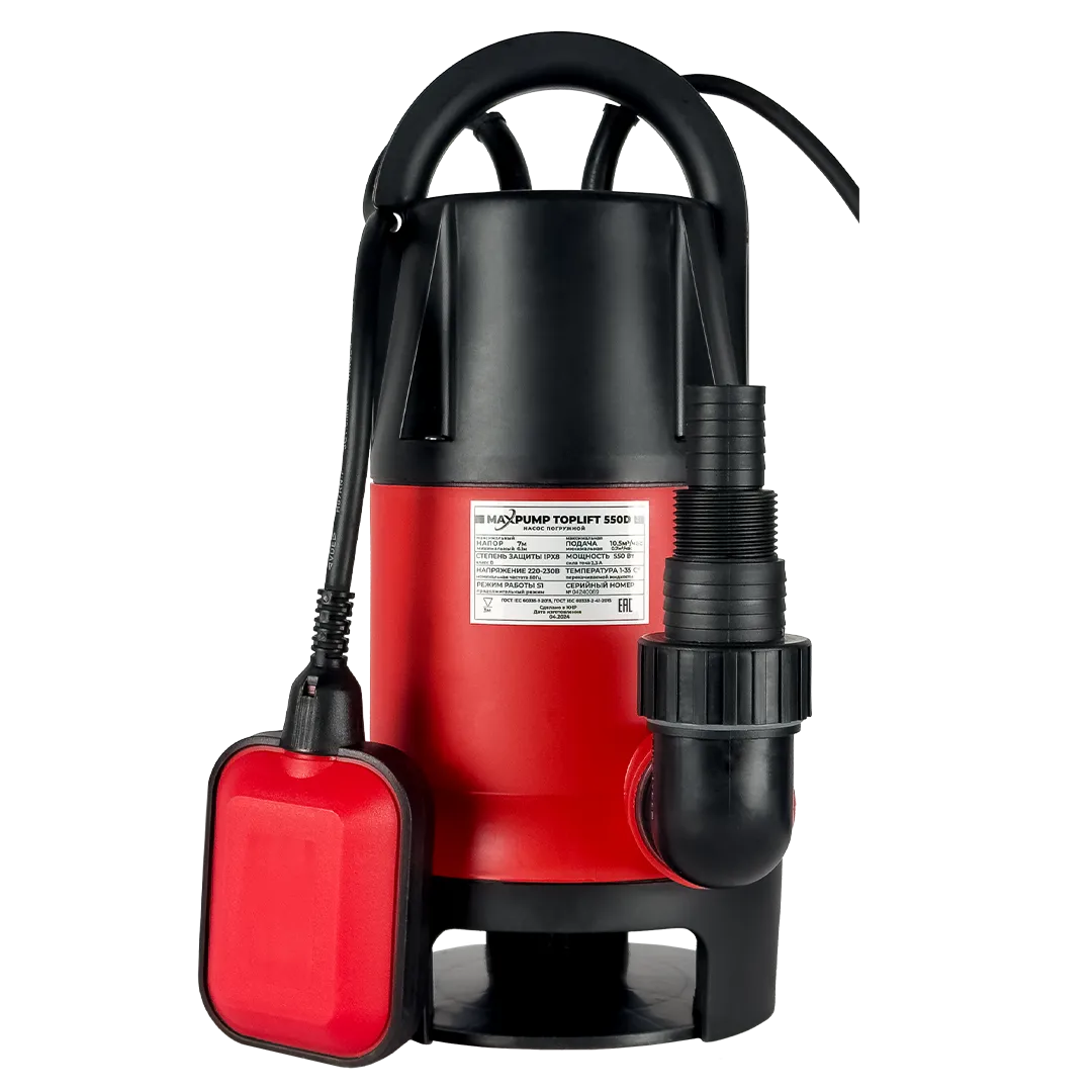 - Одним из главных преимуществ насоса MAXPUMP TOPLIFT 550 D является его высокая мощность — 550 Вт. Это значение позволяет эффективно перекачивать грязную воду, сточные воды и другие жидкости с мелкими частицами. Такой уровень мощности обеспечивает надежную работу даже в сложных условиях, где требуется высокая производительность.