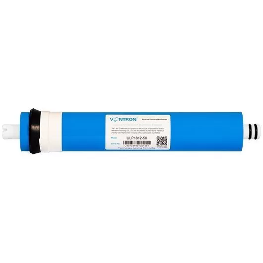 Обратноосмотическая мембрана Vontron ULP1812-50 предназначена для эффективной очистки воды от всех примесей размером крупнее 0,0001 микрона, включая органические и неорганические соединения, соли, бактерии и вирусы. Этот продукт также предотвращает образование отложений накипи и обеспечивает производительность до 190 литров в сутки, с уровнем ресурса до 6000 литров в зависимости от качества и степени загрязнения воды, а также от давления в системе.