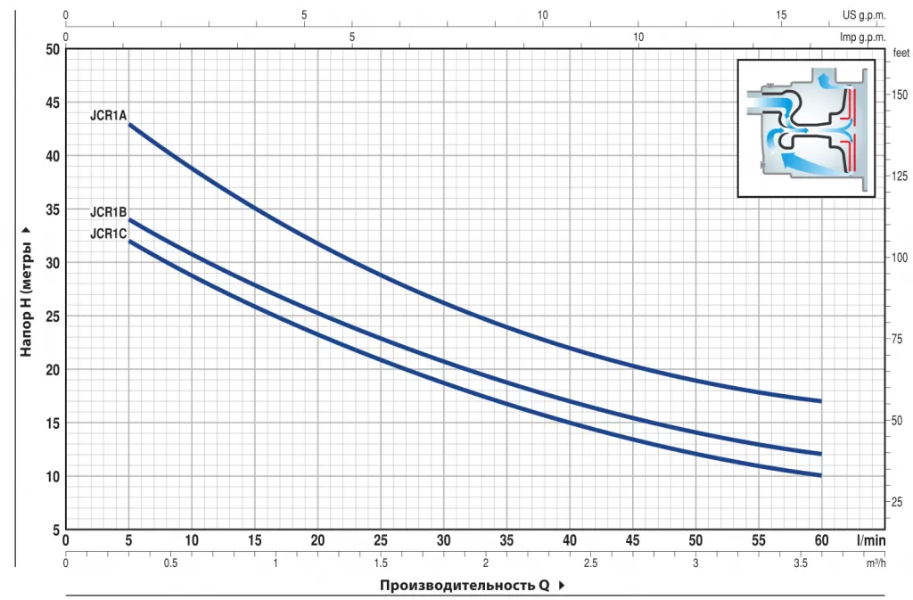 Максимальное количество метров на которое насос может поднять воду.