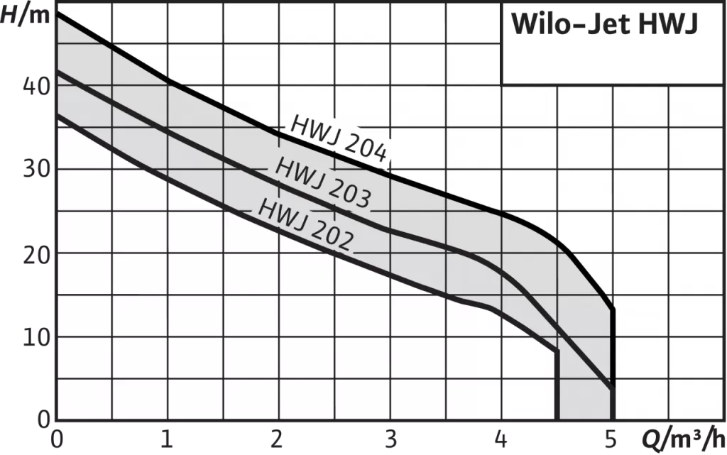 Насосная станция WILO HWJ-202-EM - установка с центробежным насосом в компактном исполнении с горизонтальным всасывающим и вертикальным напорным патрубком, которая состоит из следующих компонентов: Самовсасывающий одноступенчатый струйный насос со сквозным насосным валом электродвигателя и не зависящим от направления вращения скользящим торцовым уплотнением. Напрямую присоединенный фланцами однофазный или трехфазный электродвигатель со встроенным термическим защитным выключателем и конденсатором в исполнении для однофазного тока. Система управления насосом с управляющим агрегатом и мембранным напорным баком, манометрическим выключателем и манометром (0–6 бар). Все детали, находящиеся в контакте с перекачиваемой средой, не подвержены коррозии.