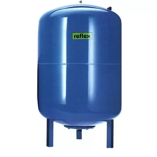 Расширительные баки для ГВС Refix DE 100 предназначены систем питьевого водоснабжения, горячего водоснабжения, систем пожаротушения, промышленного водоснабжения. Конструкция бака представляет собой непроточный гидроаккумулятор с бутиловой сменной мембранной в виде груши в соответствии с DIN EN 13831. Поверхности всех баков, контактирующие с водой, защищены от коррозии. На заводе заполнены азотом с предварительным давлением 4 бара. Баки снабжены рабочими штуцерами для подключения к системе ГВС диаметром 1". У основания бака установлены специальные опорные ножки. Максимальное рабочее давление для данной модели составляет 10 бар.
