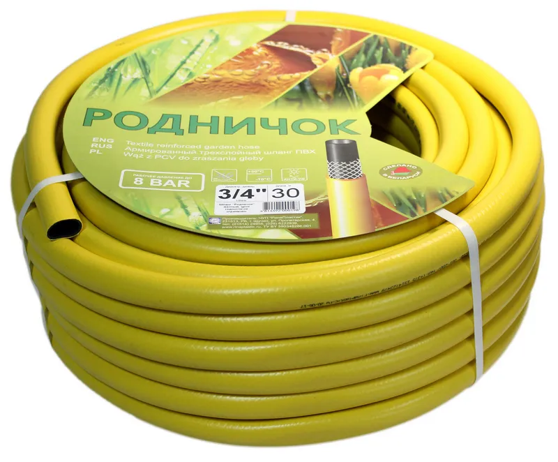Шланг ПВХ поливочный армированный Родничок 3/4" 20м (желтый)
