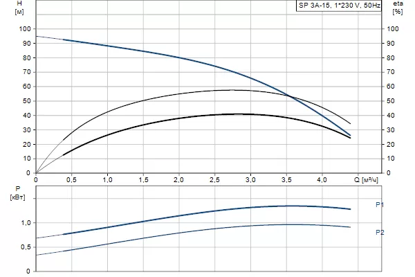 Насос Grundfos SP 3A-15 создан с применением новейших гидравлических технологий. Grundfos SP 3A-15 созданные специально для того, чтобы обеспечивать максимальную эффективность в периоды высокой нагрузки, насос имеет низкую стоимость и высокую надёжность эксплуатации вне зависимости от вида назначения. Grundfos SP 3A-15 обеспечивает высокую эффективность, высокое сопротивление абразивному износу (песку и иным абразивам), защиту от перегрева двигателя и простоту технического обслуживания. Также доступна готовая к применению система контроля и управления, предназначенная для постоянной оптимизации работы насосной системы. Максимальная производительность насоса 4.3 м3/час, максимальный напор 95 м при мощности электродвигателя 1100 Вт. Насос работает от сети 220 в. Гарантийный срок на насос Grundfos SP 3A-15 составляет 2 года.