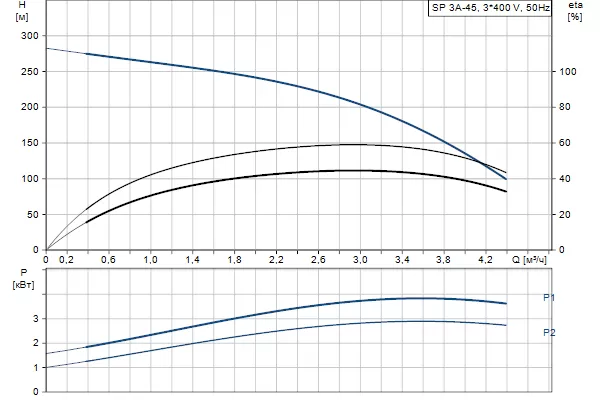 Графические характеристики Grundfos SP 3A-45